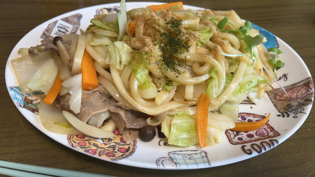 ヒガシマルのうどんスープの手にかかれば、焼うどんもあっという間!!