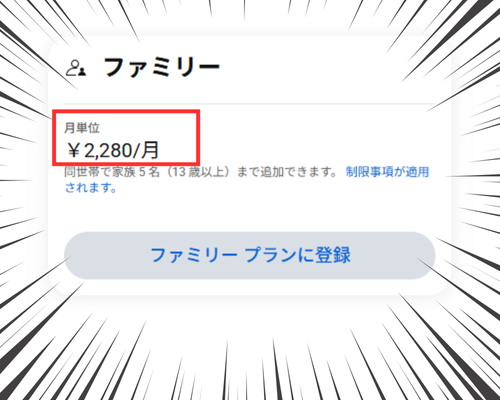同じファミリープランでも、Googleアカウントで登録すれば正規料金になります