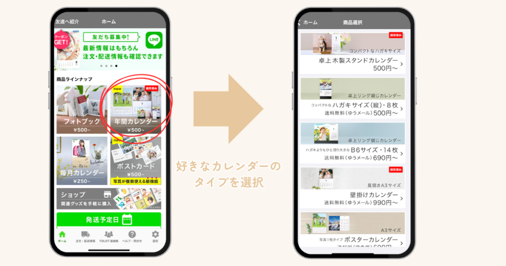 ③TOLOTで年間カレンダー>好きなタイプのカレンダーを選択