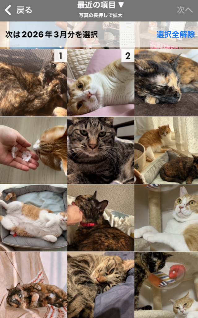 使用する写真を月順にさくさく選択していきます。