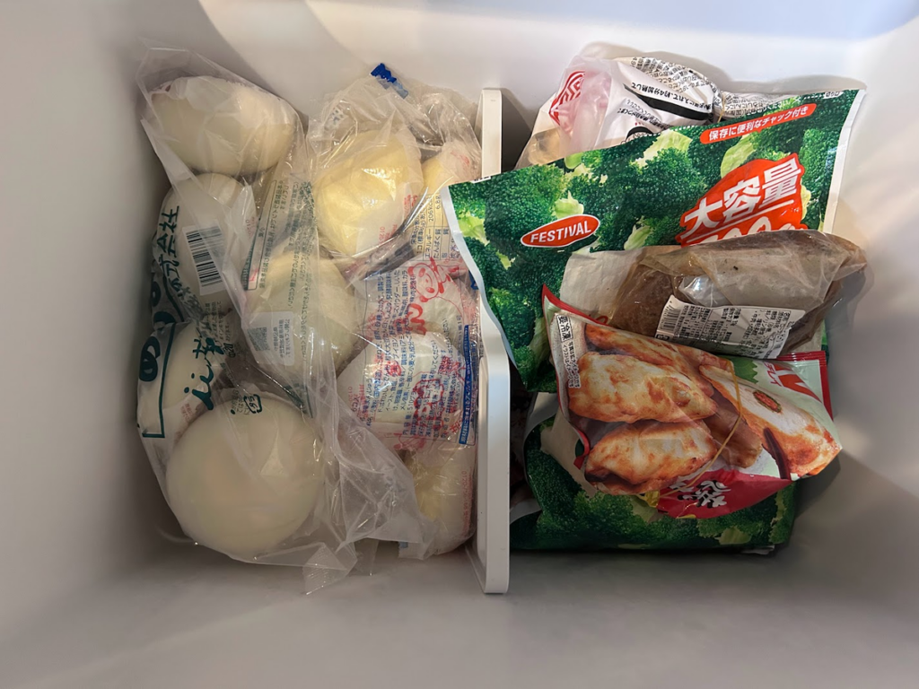我が家の冷蔵庫は358L。冷凍庫部分はおおよそ80L前後です。