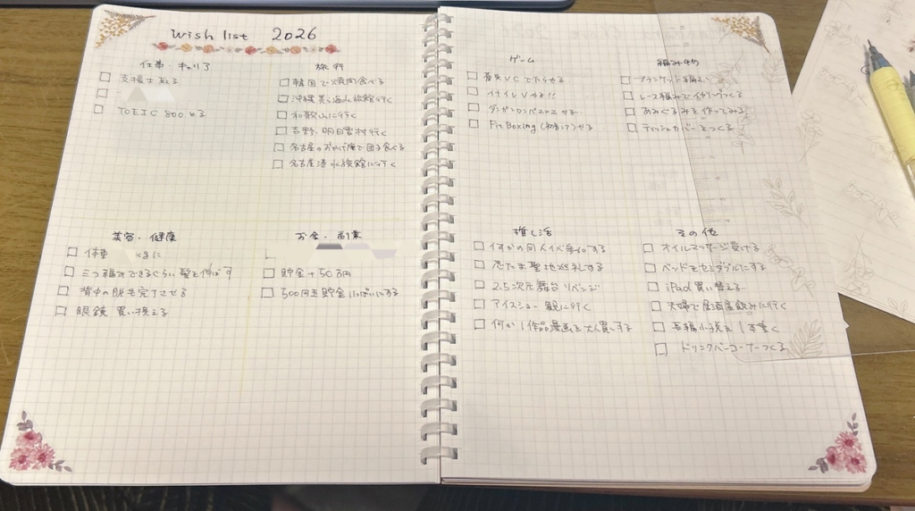 年の途中でやりたいことが変わるときもあるので、フリクションペンで記入。