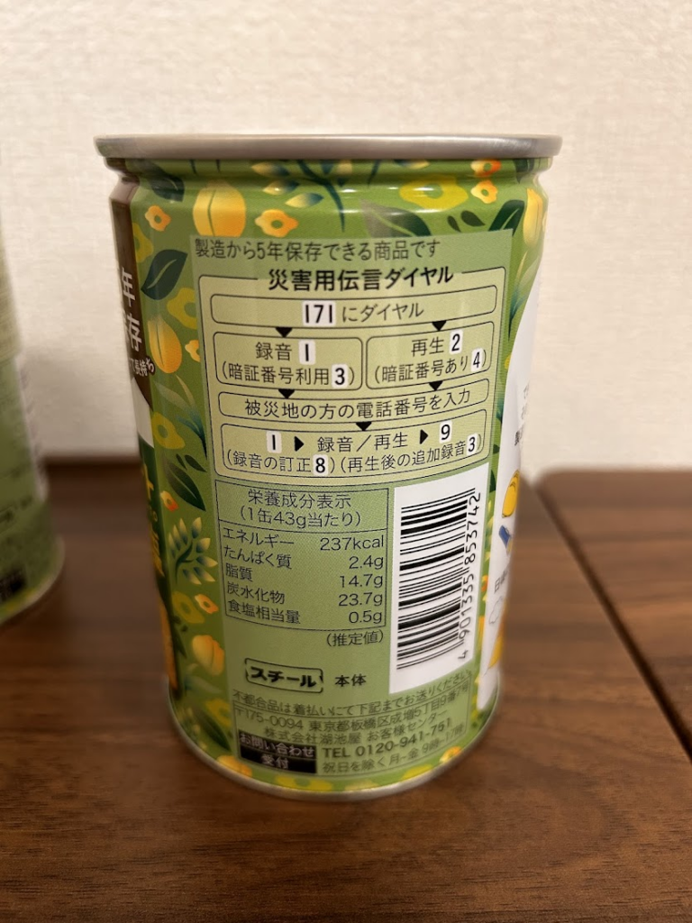 パッケージ横に災害用伝言ダイヤルの情報が記入してあります。