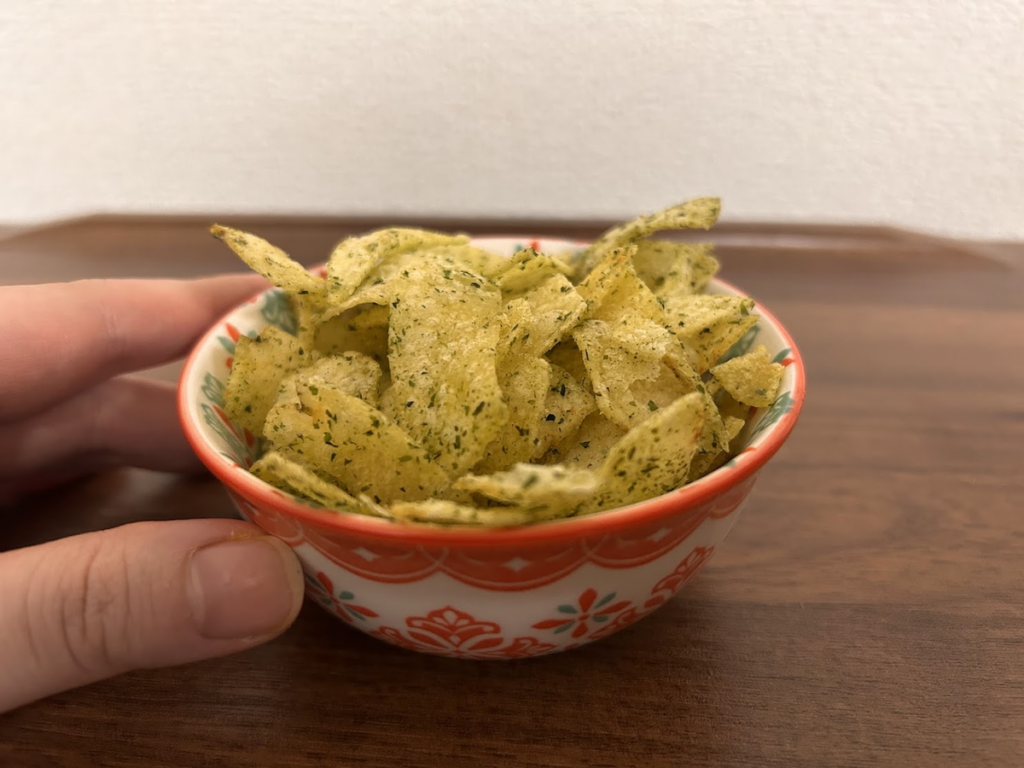 驚くことに、味・食感は通常の湖池屋のポテチと全く変わらないです!
