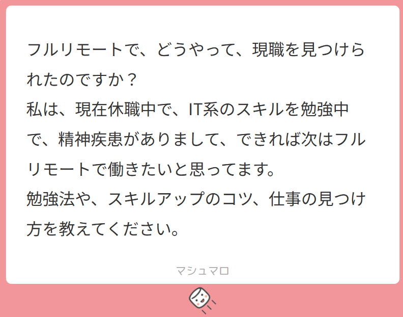 (おそらく)未経験からIT×フルリモートという働き方を選択肢の一つとして考えていらっしゃるとのことですね。