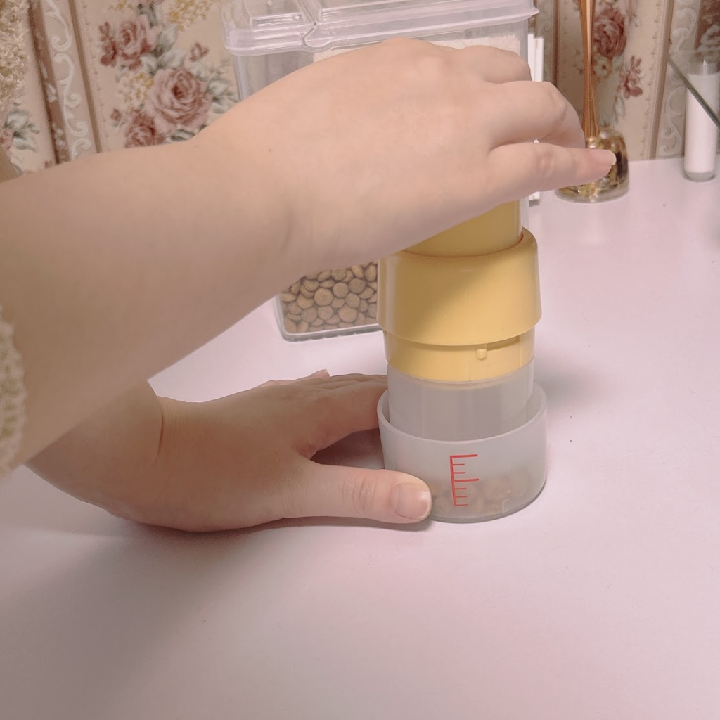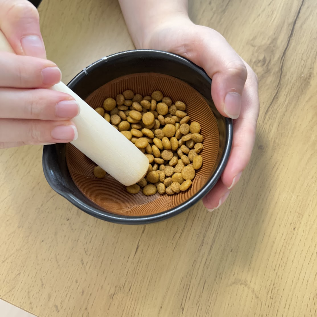 だいたい一食分(20g)ぐらいしか砕くことができないので、ちょっとずつしか砕けないです。