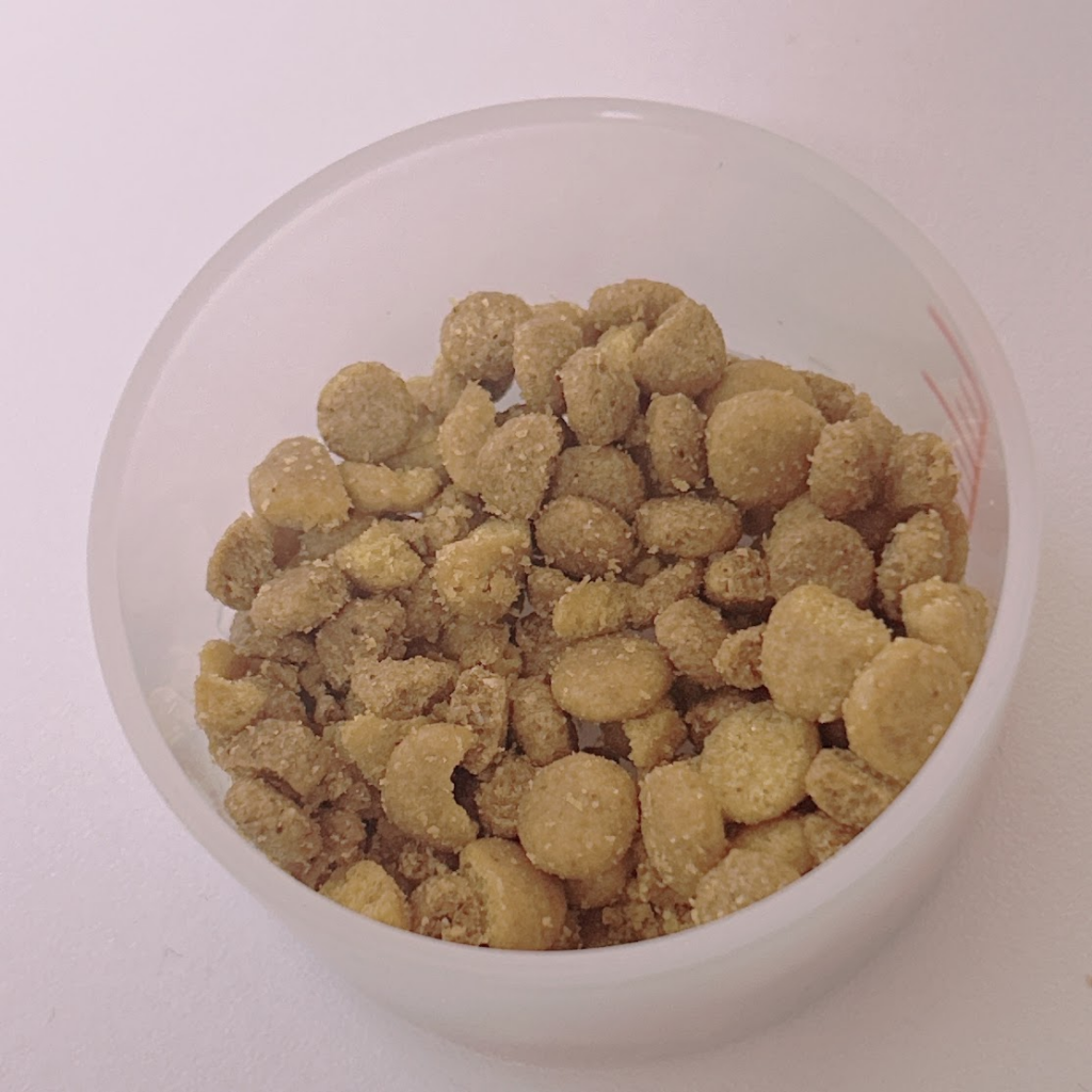 最近我が家の猫ちゃんが高齢のため、大きい粒のご飯を食べるのがつらくなってきたようです。